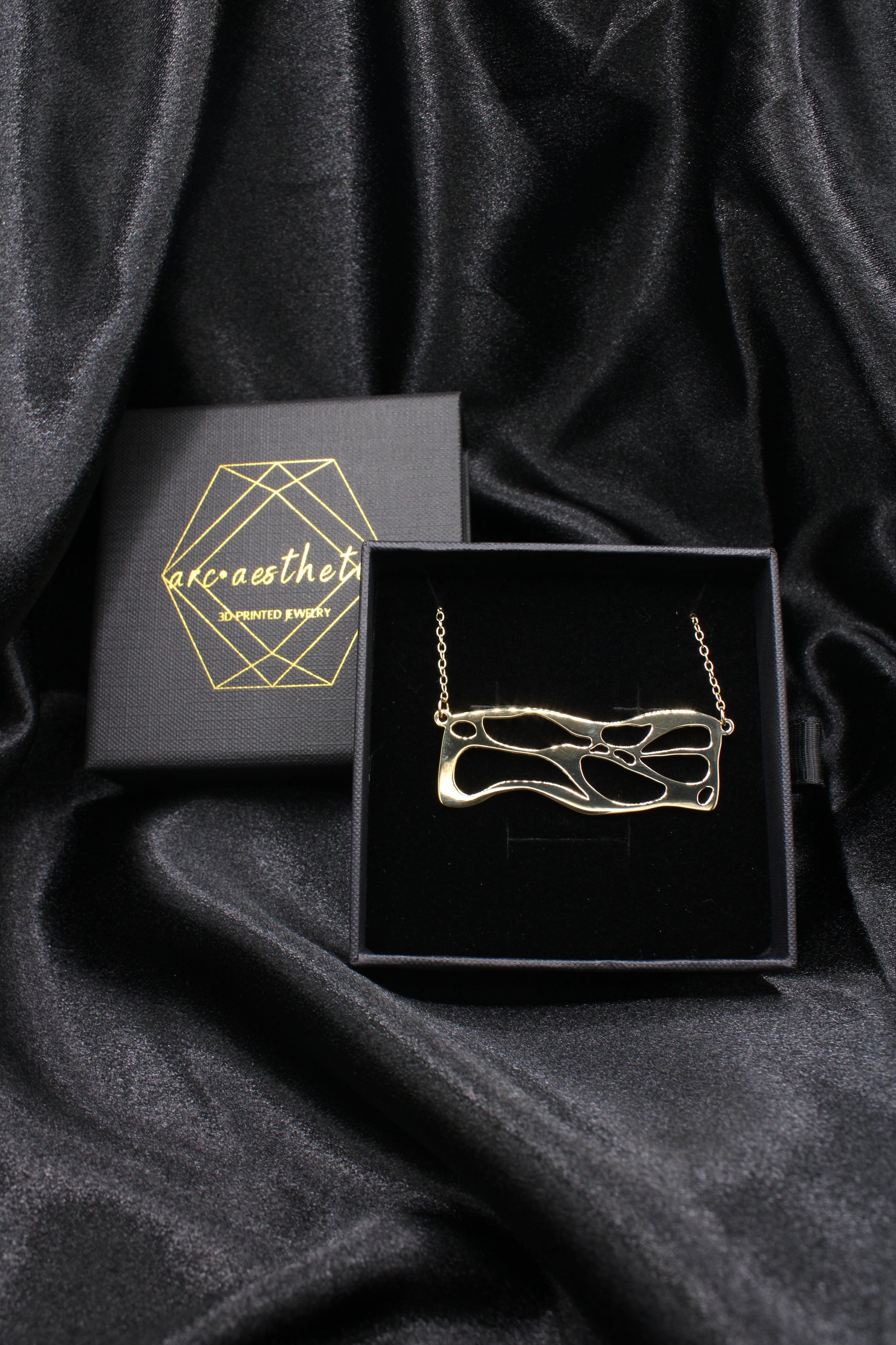 A sculptural form forged in metal. The Organic Void (Monarch) Necklace distills movement, absence, and tension into a wearable shape. Originally 3D printed in PLA, this piece was reimagined in precious metals by request—proof of how adaptable great design can be.
