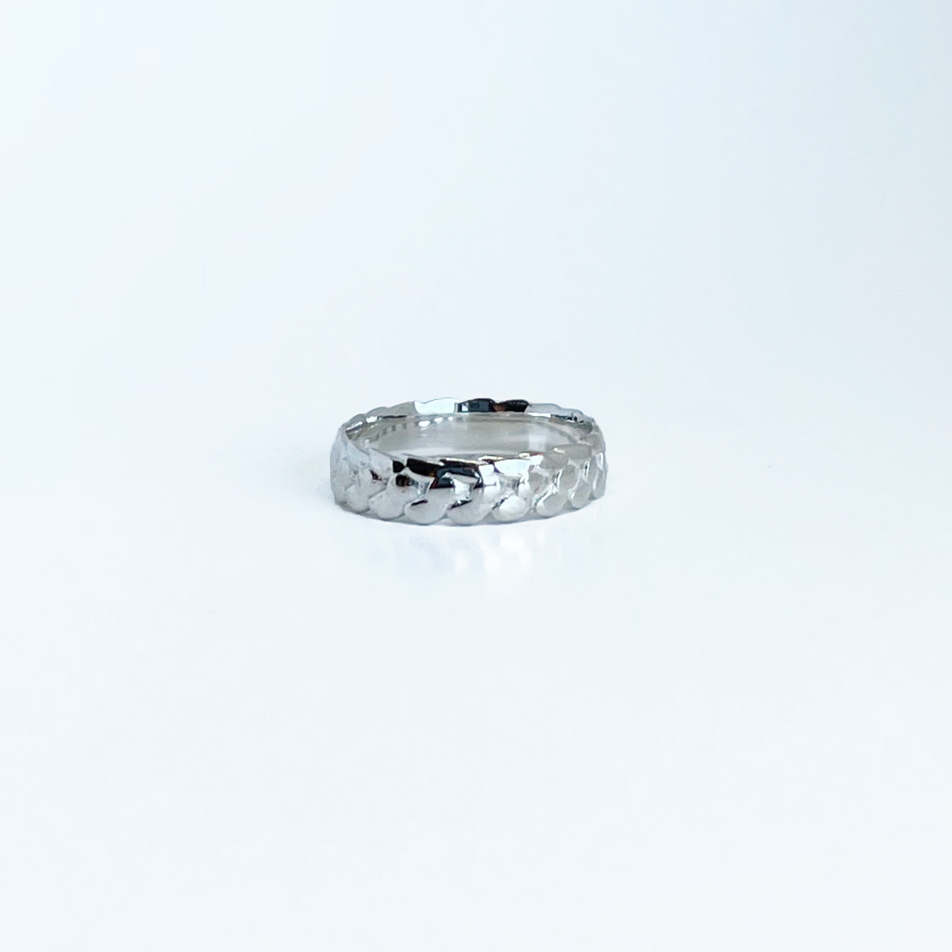 The Stone Texture ring is sure a touch of nature-inspired elegance. Influenced by the clustered aesthetic of stones and pebbles found in nature.
